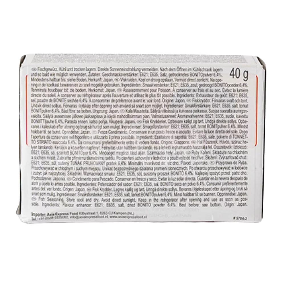 Salz, Geschmacksverstärker (E621, E635), getrocknetes Bonitopulver (6,4%).
